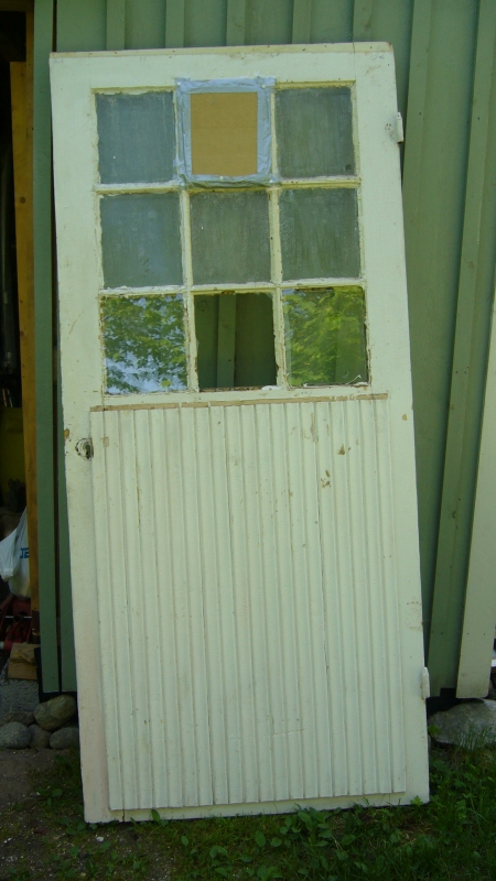 Ovi ennen maalinpoistoa ja maalinpoiston jälkeen. Ja testattu oven toimivuus puutöiden jälkeen.